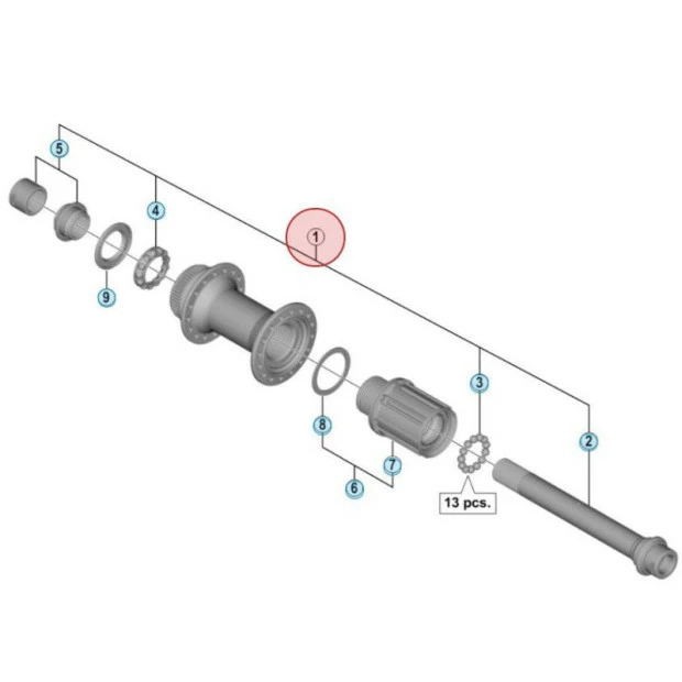 Axe complet de moyeu arrière Shimano Deore XT FH-M8010