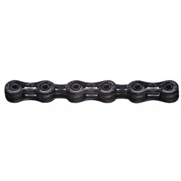 La chaîne Yaban SLA 110 Ti Black est une chaîne 11 vitesses conçue à la fois pour les vélos de route et les VTT. Elle est dotée de la technologie SLA, un système d’autolubrification très efficace, augmentant sa durée de vie sans entretien particulier. La découpe au laser des maillons la rend très légère et durable dans le temps. Testée pendant plus de 500 heures dans un brouillard salin, elle a prouvé sa grande résistance à la corrosion.
