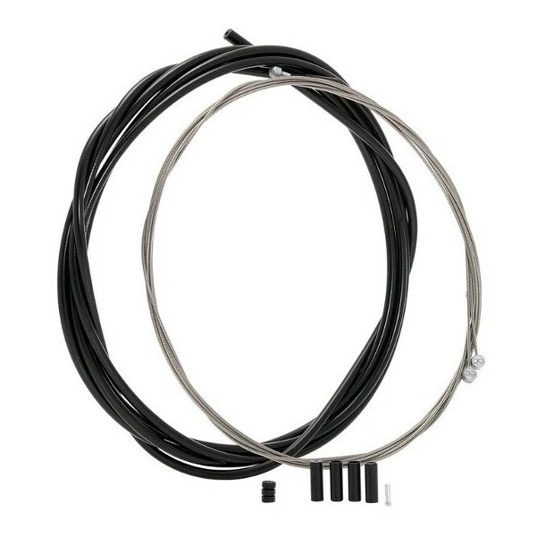 Le kit de freinage XLC contient une gaine (Ø 5 mm x 2500 mm), deux câbles intérieurs (1350/2350 mm) en inox, six butées de douilles, trois donuts et deux embouts de câble. Le kit est compatible avec les deux système de boules. Les boules inutiles doivent être coupées avec un coupe-câbles aiguisé, les extrémités seront ensuite protègées avec les embouts prévus à cet effet, contenus dans le kit.