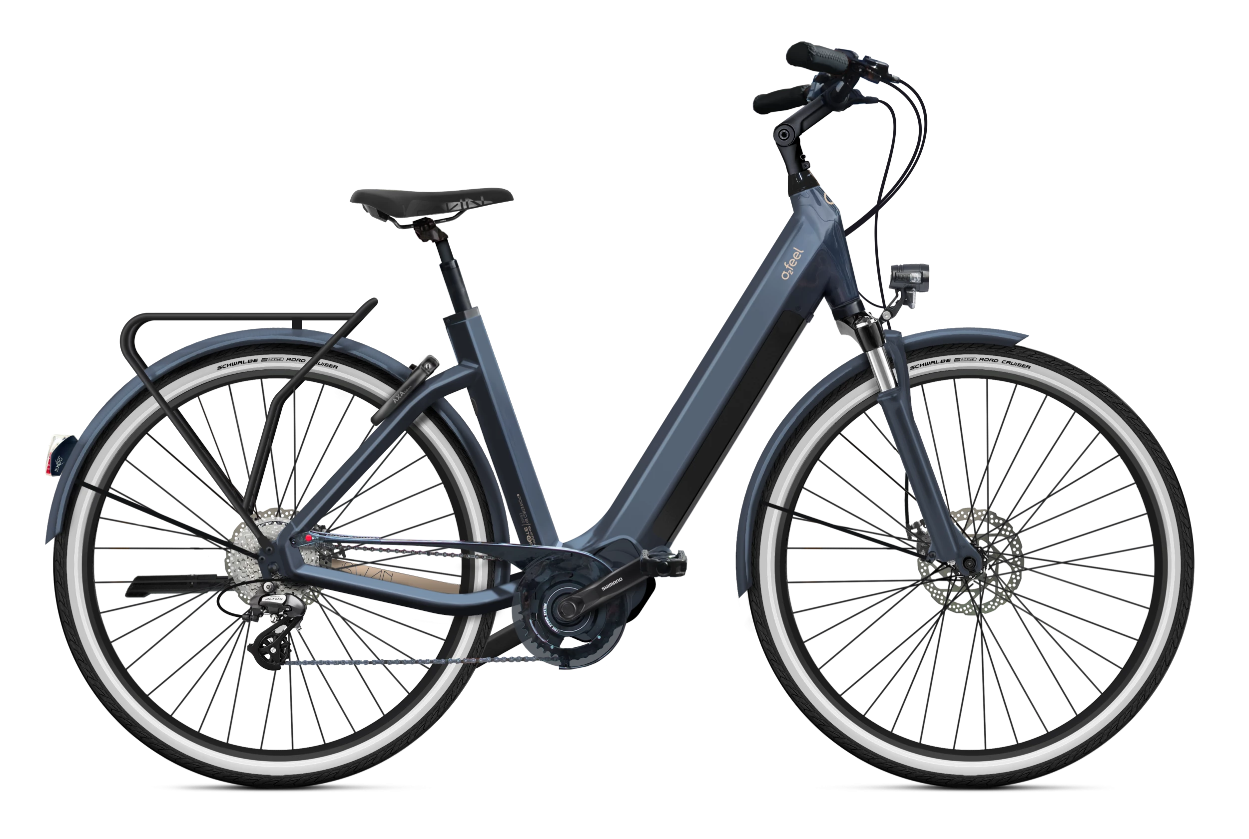 Découvrez la nouvelle gamme O2FEEL 2022. Vélo électrique urbain iSwan City Up 5.1 432 ou 540Wh. Moteur SHIMANO Steps E5000 40Nm, batterie iPowerPack.